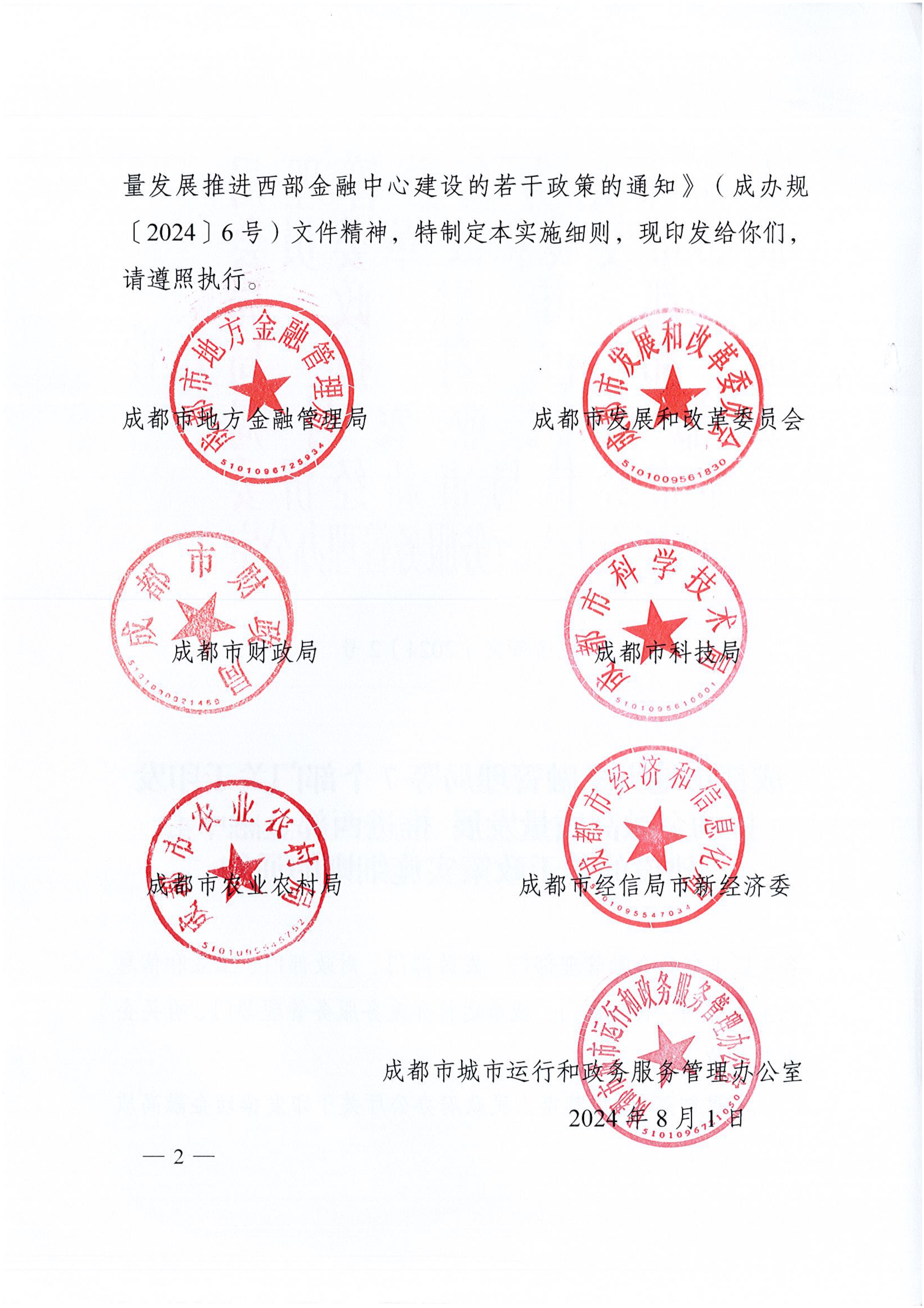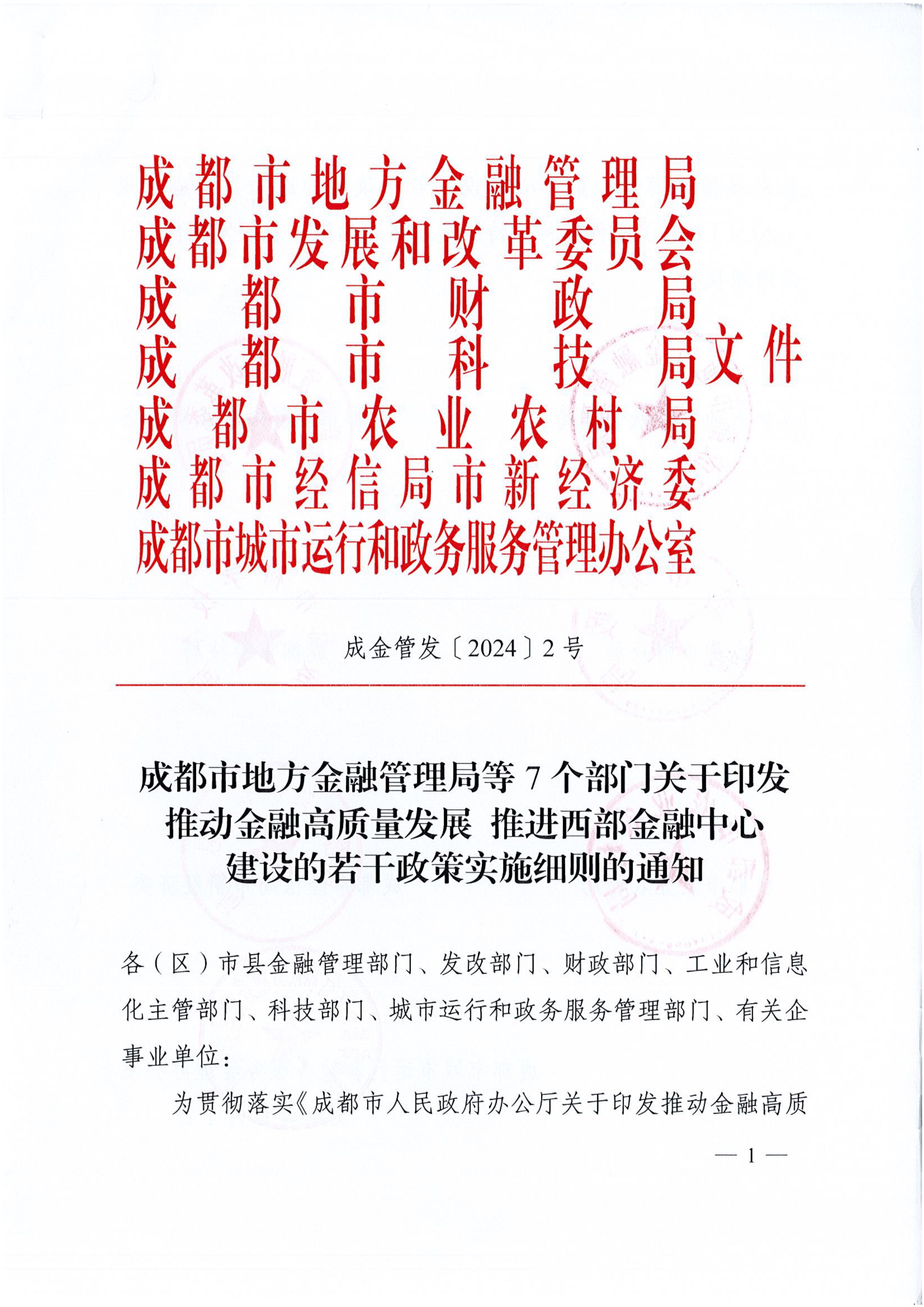 成都市地方金融管理局等7个部门关于印发推动金融高质量发展推进西部金融中心建设的若干政策实施细则的通知